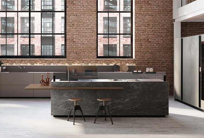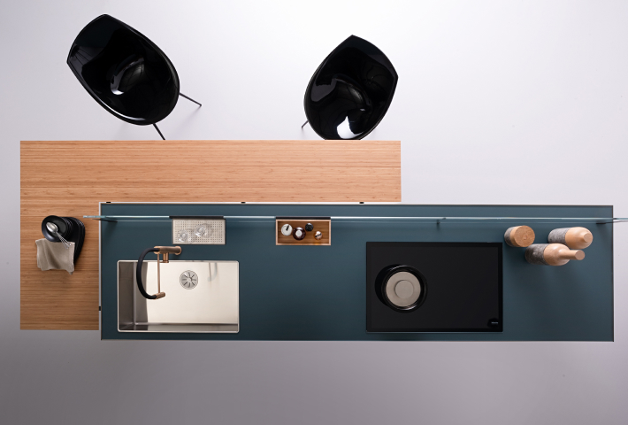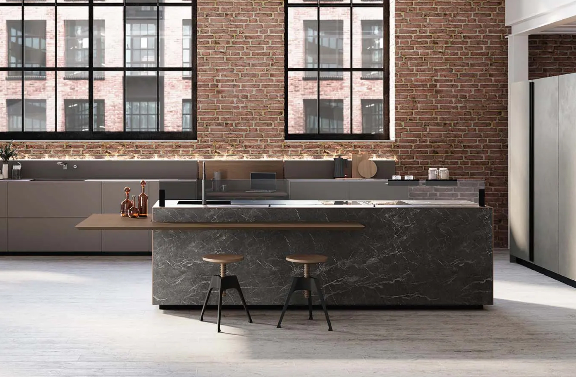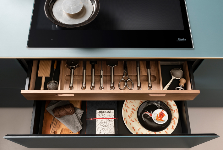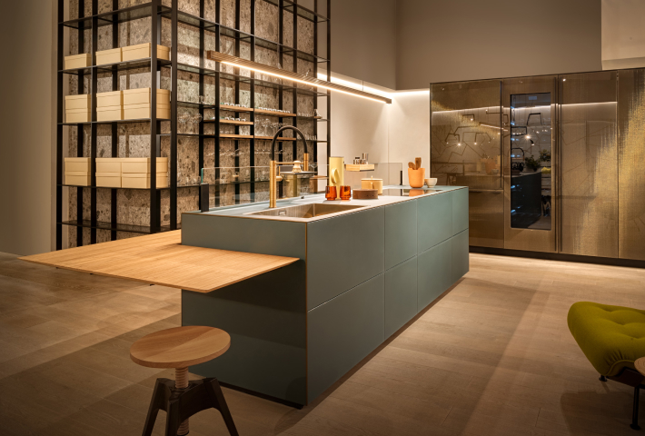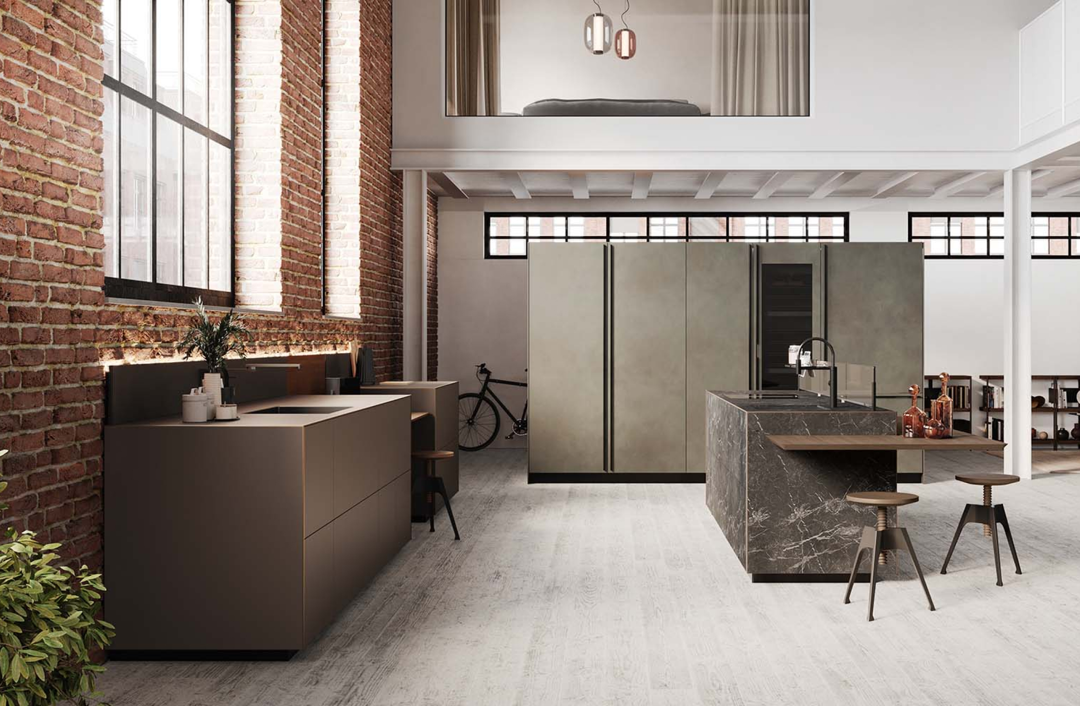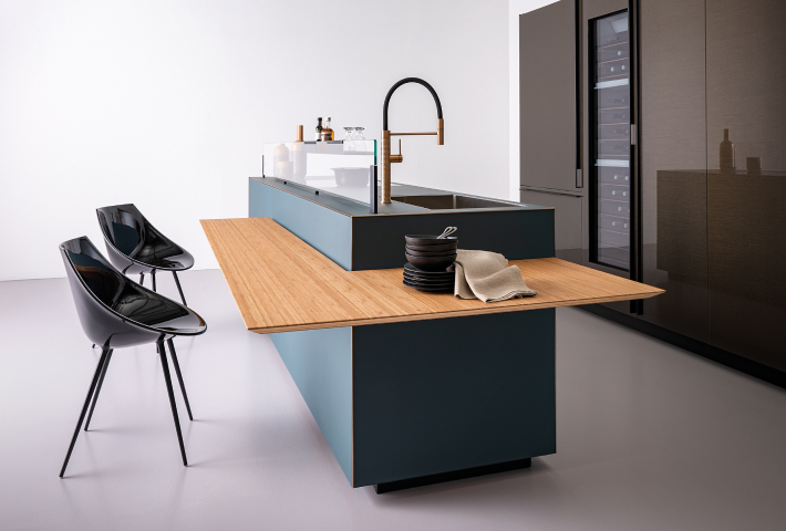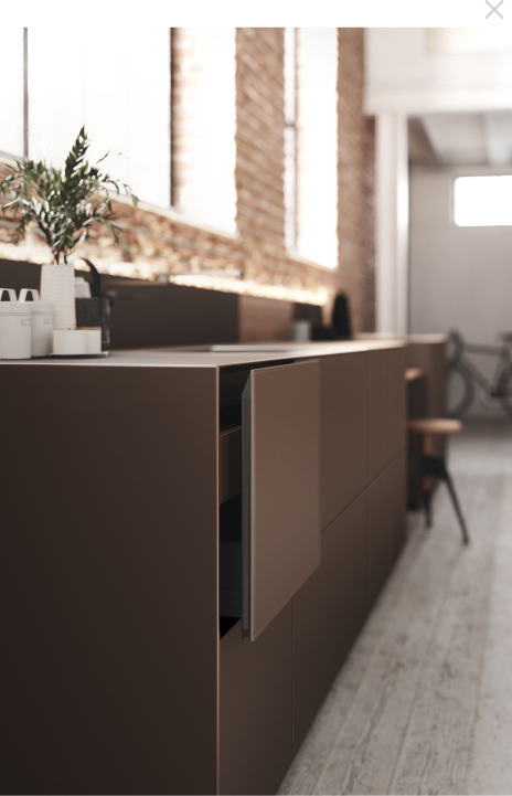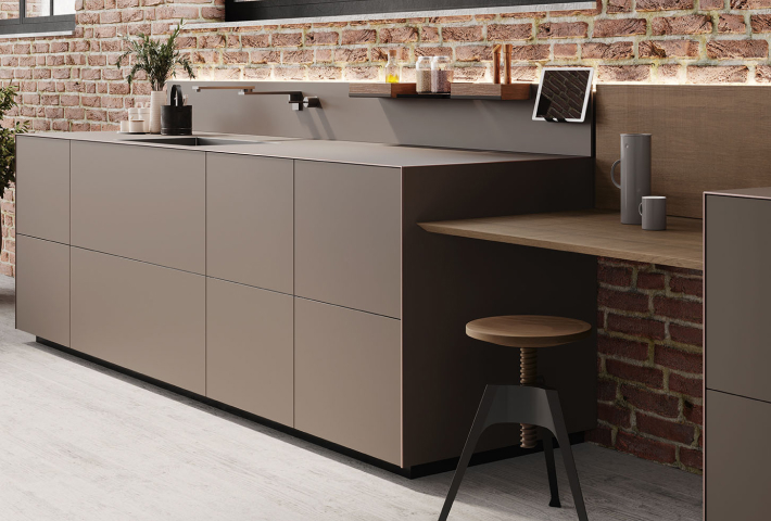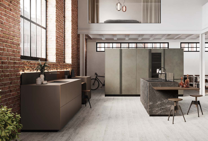 純粋なボリュームを追求し生まれたArtematica Soft Outlineは、トップ、扉、サイドパネルが一体となり、まるで一つの塊のような調和の取れたデザインを実現しています。上品に装飾された金属のプロファイルが、キッチンのエッジを走るように、ボリュームを際立たせています。さらに、シームレスな表面を強調し、洗練されたエレガンスを加えます。アルマイト加工を施したアルミプロファイルは、黒、銅、ブロンズからお選びいただけます。