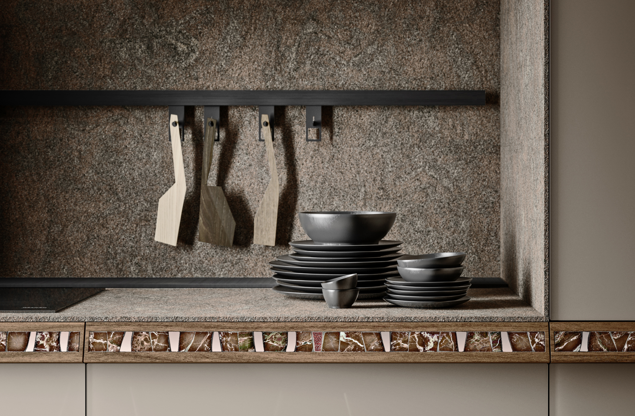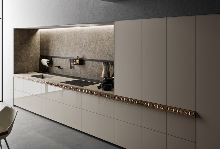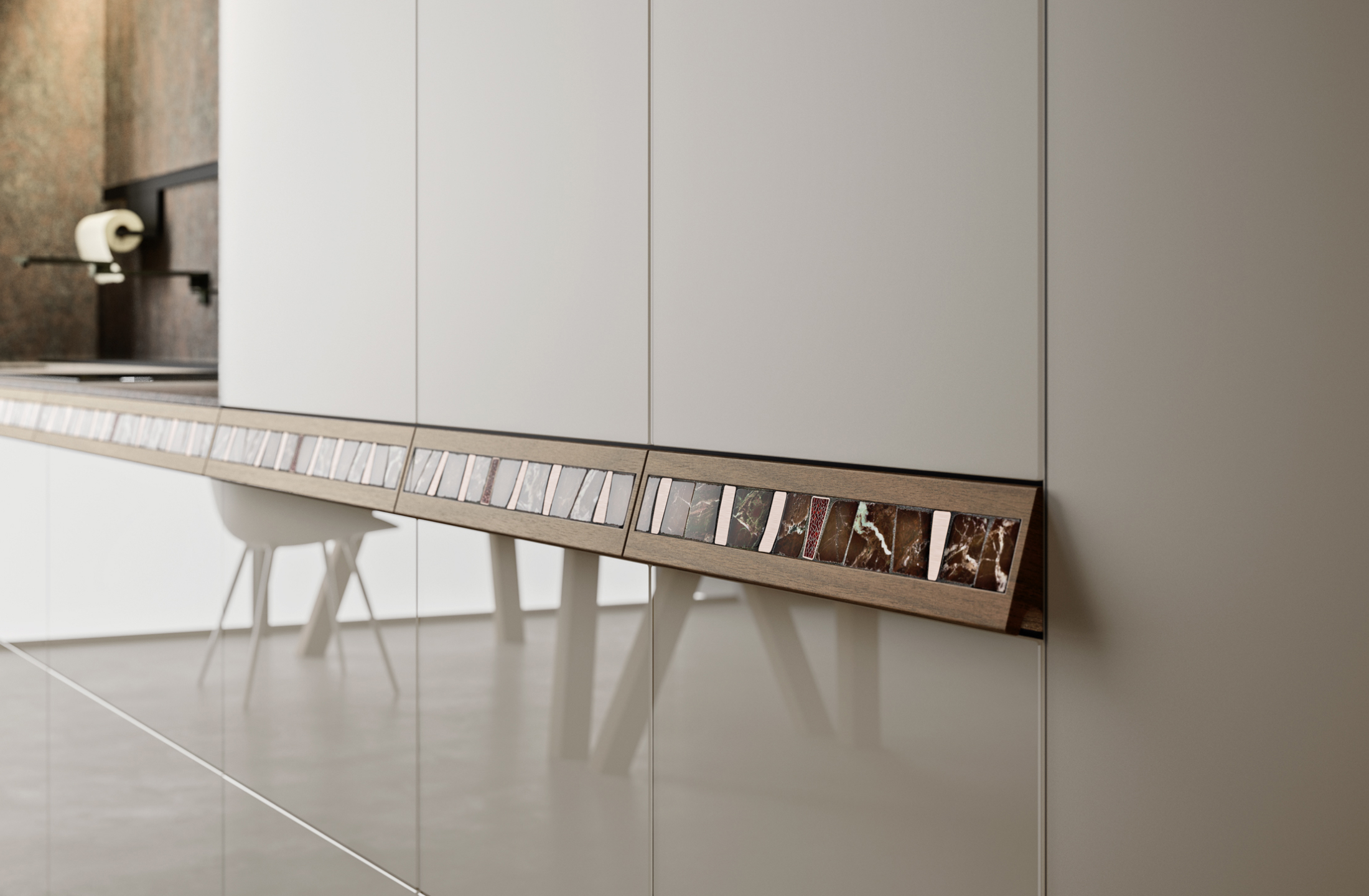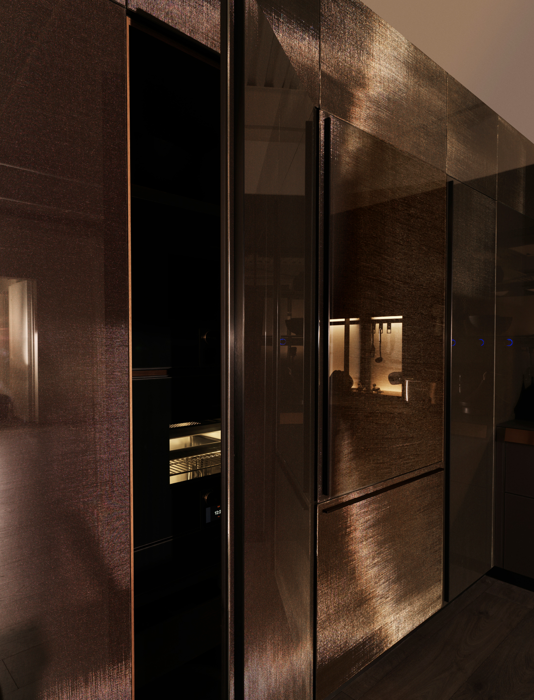 精緻な職人技によって、まるで「宝石」のように、個性を象徴するカスタマイズの中心となり、キッチンを唯一無二の存在に昇華させます。この基本的なディテールは、キッチンそのものの形と素材に溶け込み、洗練された完成度と徹底した研究の成果を示しています。